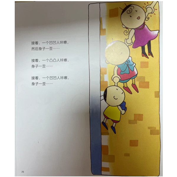 在花生星球上,住着两个不同的人种——凸凸人和凹凹人。他们长得非常像,除了手不一样:凸凸人的手是凸出来的,凹凹人的手是凹进去的。凸凸人和凹凹人生活在不同的国家,他们谁也不理谁。直到有一天,一个凸凸国男孩不小心从一座高塔上跌落……凸凸人们伸出手来想抓住他,但根本就抓不住!这时,咔嚓,一个凹凹国男孩伸手抓住了凸凸国男孩,但是凹凹国男孩身子一歪,也掉了下去,一个凸凸国女孩抓住了他,咔嚓。可她也身子一歪……就这样,凸凸人和凹凹人一个接一个地抓住对方,他们就像绳子一样连接起来,直到凸凸国男孩安全地落到地面上。从此以后,凸凸人和凹凹人就开始友好地和对方相处。而且,还有凸凸人和凹凹人结婚了。他们生下的婴孩有一双特别美好的手。
