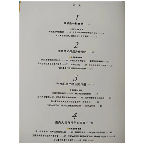 1.日本全国学校图书馆协议会选定图书,中科院植物研究所专家特约审稿,内容权威有保障。 2.“种子的故事”系列图书包括《种子的故事:生命篇》《种子的故事:传播篇》《种子的故事:发展篇》共三册。从生命、传播、发展三个角度,科学解答种子的奥秘。 3.《种子的故事:发展篇》重点讲述种子是怎样成为作物的、作物是如何向全世界传播的,以及种子对人类发展的作用等问题,让读者深入了解种子与人类文明发展的关系。 4. 每册书各包括4个章节,每个章节都由趣味故事展开,穿插讲解科学知识,在章节后另附知识点详细解说。语言通俗、知识,充分满足对植物感兴趣的读者的需求。 5.每册书各含100多幅插图、照片、图表等,表现形式多样,图文并茂,通俗易懂。 6.融汇植物学、遗传学、人类学等多门学科知识,锻炼孩子立体多维的思考能力,帮助孩子建立科学的世界观。