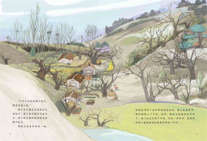 老熊的这个世界被限制在他的茅草院、小花园里,与现实的人类村庄相隔绝,一旦他跑出自己的世界,就会被说成是“小偷”,遭到不友善的对待,为此,他有时还要被迫穿上偷来的人类服装。但这并不意味着没有沟通的可能,因为隔绝它们的是象征美好和治愈的杏林,作者在其中寄托了她美好的期冀,希望两个世界*后达成沟通和和解。小瓶子正是充当了这个角色。在故事的*后,她和妈妈的一番对话,正暗示了这种可能。