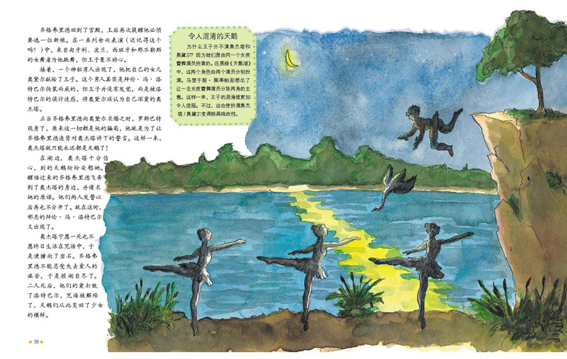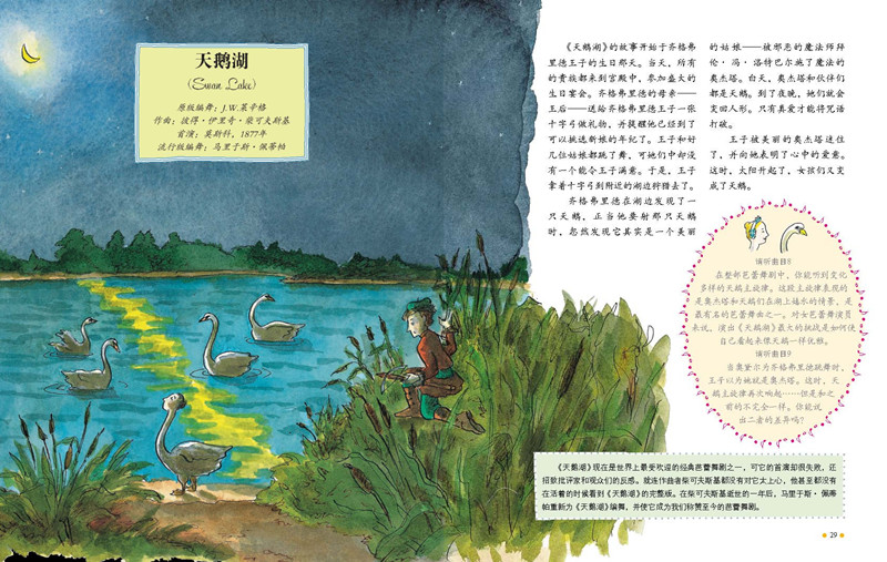 **次看芭蕾舞时,你可能觉得它很奇怪。女舞蹈演员们踮着脚尖舞动,她们的裙子看上去就像雏菊的花瓣;所有演员,无论男女,都穿着紧身衣;没有人说话,他们从头到尾都通过动作来讲述故事;他们跳跃和旋转,就像要飞起来一样!多么奇怪!然而,不知道为什么,这一切看起来却那么优雅美丽。这就是芭蕾舞的艺术魅力。