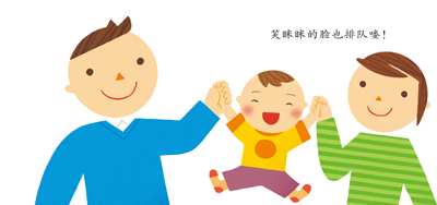 作者特意选择了小年龄孩子熟悉的一些事物,让他们排排队。以重复的、可预测的节奏,缓缓呈现。最后落笔到一家三口笑眯眯的脸排在一起,带给孩子的安全、幸福和满足。