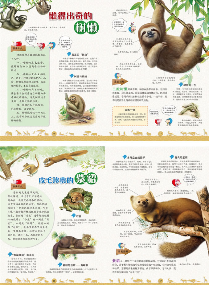 《趣味图解 动物大百科》是一本真正意义上的手绘超写实动物百科,全书采用写实手绘技法,刻画细腻,通过对动物形态特征的“解剖”,形象而详实地表现出了动物的生理特征和生活习性,让读者形象而直观地感受到动物们自然、原始、生动的生活情景,内容详实丰富。全书还采用互动式的阅读形式,图文并茂,卡通人物用俏皮的语言作趣味穿插,让生硬、死板的知识点活跃于纸上,形象生动而充满着幽默和发现的快乐。