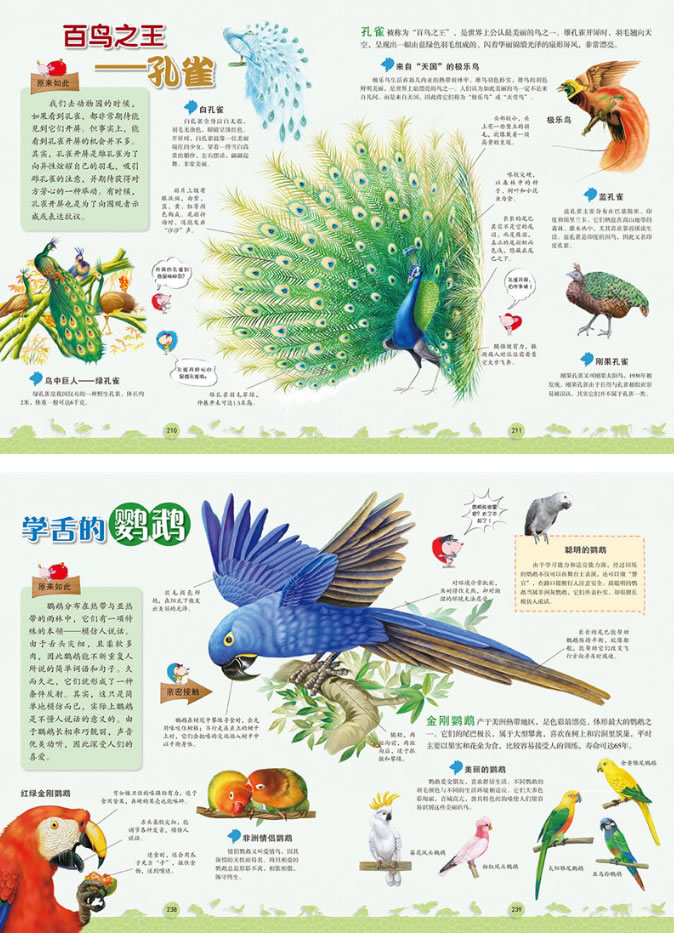 《趣味图解 动物大百科》是一本真正意义上的超写实手绘动物百科,全书配有1000多张原创手绘动物图片,通过对动物形态特征的“解剖”,生动而翔实地表现动物的生理特征和生活习性,还原真实、细腻、震撼的动物形象,让小读者直观地感受真实的野生动物世界。全书采用互动式阅读的方式,引入了“帕帕拉拉”和“帕帕拉奇”这两个呆萌可爱的卡通人物。帕帕拉拉用生动、俏皮的卡通语言,帕帕拉奇用翔实、客观的动物百科知识,带领小读者领略神秘莫测的自然世界,触摸动物们富有质感的皮毛,闻闻它们真实的气味,与它们进行充满情感的眼神交流,从而体会动物们的智慧与温情。全书图文并茂,内容丰富,雨林、山地、苔原、沙漠、沼泽、海洋……小读者能在不同的地理环境中,体验各种动物迥异而又奇妙的生存法则。书中超千张写实手绘风格的动物图片,刻画细腻,视觉冲击力强,让小读者在快乐愉悦的阅读氛围中探寻动物王国的奥秘,也让热爱动物、保护环境的观念在小读者的心中深深扎根。