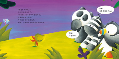 ● 全书情节简洁,内容极有规律:熊猫邦邦、小鸟哔哔、斑马斑斑,成日坐在热带雨林当中一棵大树干上,无所事事,想象些雨林外的世界,谈论些生活琐细,做些绝不执行的打算,一切慵懒闲适,哲理似隐似现。