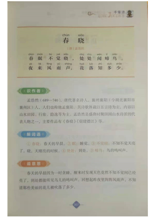 这套“影响孩子一生的国学启蒙经典”精选12部国学精华,涵盖蒙学经典、诗歌、成语、儒家著作等,均参考权威版本,并用精确注释、趣味故事、精美图片全新诠释,带领孩子充分领会和继承优秀的文化传统。千锤百炼的名言警句,朗朗上口的音韵之美,博大精深的思想内涵,让孩子们终生铭记、受益永远。本套丛书旨在加深孩子对中国古典文化的了解,对他们心智的成长和性格的形成起到积极的作用。与此同时,这套书在装帧形式上精致耐用,各个栏目的设置生动活泼,插图精美,可以充分调动孩子阅读的积极性。《千家诗》是古代幼儿启蒙的经典之作,所选作品多为唐宋诗人著名的绝句和律诗,题材广泛,篇幅短小,音律和谐,意境优美,适宜吟诵,是儿童读诗学诗的范本。本书精选了百余首名篇佳作,对原文加以拼音、注释和译文,配上精美插图,意在让孩子们在诵读的同时,能够更好地理解诗的内容,体会诗中的意境,感受古诗之美。