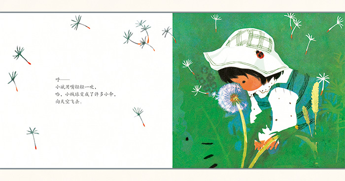 《蒲公英》这是一个关于分享的小故事。小斌找到一朵美丽的蒲公英绒球,小心翼翼带到幼儿园里,与也想吹绒球的小朋友一起,吹出了美丽漫天的蒲公英种子。寓意在于分享不仅能让分享者感受到快乐,更能感染更多的人。画家王福民老师绘制出的唯美和纯净,为这个故事添加了光彩。