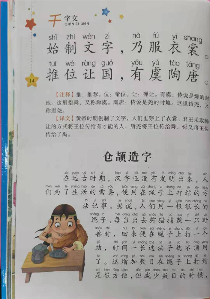 《千字文》原名为《次韵王羲之书千字》,南朝梁(502年~549年)周兴嗣所作的一首长韵文。它是一篇由一千个不重复的汉字组成的文章。据说是梁武帝取了王羲之写的一千个字体,令其亲人练习书法,而后觉得杂乱无章,于是又命周兴嗣(470年~521年)编为一篇文章。千字文是用来教授儿童基本汉字之重要啓蒙读物,和《三字经》、《百家姓》合称“三百千”。同时在汉字文化圈各国也受到重视。