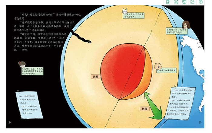 这一次,浩浩一家人在爸爸的带领下,驾驶梦想飞船进行了6次惊险刺激的地球探险之旅,分别探寻了地球的内部、神奇的极地世界、多姿多彩的地形、神奇的风雨雷电、奇妙的海底世界。在探险的过程中,一家人见识和了解了地球方方面面的奇妙现象,以及这些奇妙现象发生的原理;同时,爸爸这个上知天文、下知地理的无所不知先生,也不失时机地给孩子们科普相关的知识,寓教于乐。
