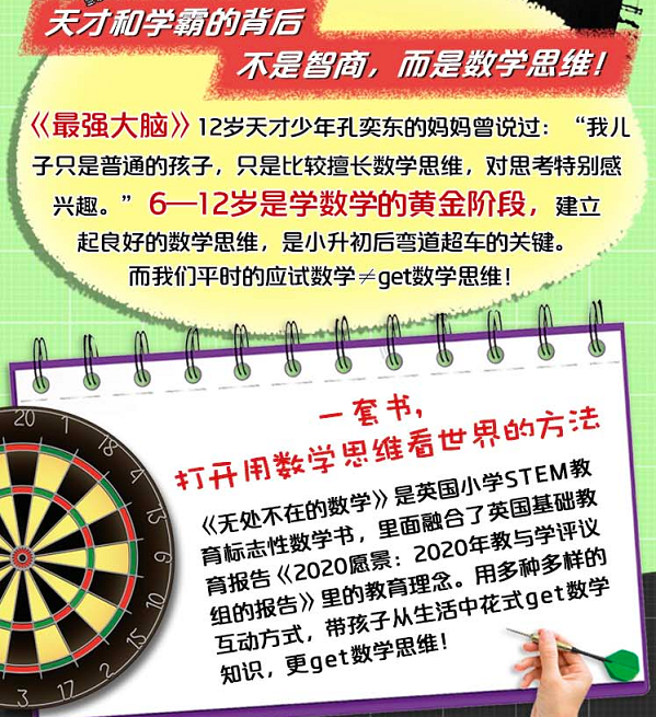 1.英国小学生都在看的STEM教育标志性数学课外读物,全面响应英国基础教育报告《2020愿景:2020年教与学评议组的报告》,给孩子先进的国外数学思维方式。