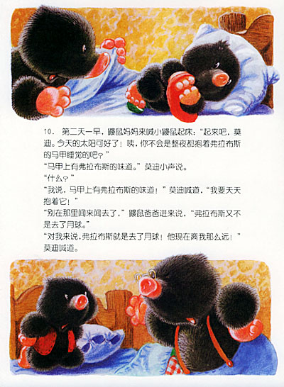 鼹鼠莫迪的好朋友小野兔走了,此后,莫迪不再做游戏,不再吃饼干,还固执地一言不发。鼹鼠爸爸和鼹鼠妈妈为此想尽办法,终于,莫迪一天天地好起来了……鼹鼠爸爸和鼹鼠妈妈巧妙地通过生活中的点点滴滴,在小熊的心中种下快乐的种子。