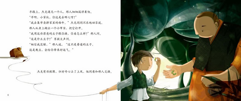 《杰克和魔豆》讲述了这样一个故事:杰克和妈妈生活在一起,十分贫穷,有一天,妈妈叫他把母牛卖了买点面粉回来,结果杰克却和一个老人用母牛交换了一把豆子回来。妈妈伤心极了,把豆子扔出了窗外,夜里,杰克起床发现豆子有魔法,正在迅速地朝天上长,杰克沿着豆藤往上爬,发现了一个特别的世界,他的结局到底如何呢?