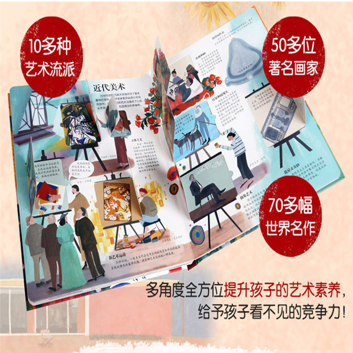 本书通过翻翻页的有趣形式,以时间为轴,从远古时代的美术开始到现代美术结束,从创作方法、创作理念等不同角度对美术进行了分析,向小朋友们介绍了不同时期美术的表现手法、绘画题材、美术家和美术流派等。阅读此书,小朋友不仅能收获丰富的美术知识,还能直击画家的创作现场、走进印象派的画展等。书中精选了许多世界美术史上的著名作品,包括绘画、雕塑、工艺品等,在培养孩子鉴赏能力的同时,还能提高他们的审美能力。