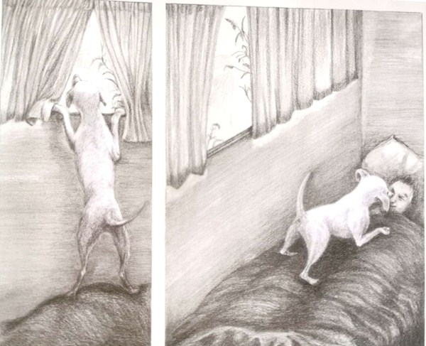 挖掘机上的小白狗
