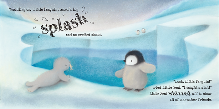 小企鹅重要的一天开始啦! 小企鹅第一次学游泳很紧张,一开始不敢尝试往大海里跳,但是他看到了小鸟通过学习飞行飞起来了,看到小海豹通过耐心钓到了鱼,看到小鲸鱼通过不断练习能在海浪上面跳跃,看着小伙伴们都滑入水中,玩着许多有趣的游戏,虽然还是紧张,但想到了他的朋友们,他们是多么不怕学习新事物,终于鼓起勇气加入了他们的游戏。