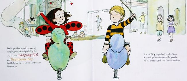 As Ladybug Girl and Bumblebee Boy, Lulu and Sam save the playground from hairy monsters and big mean robots, and have their very own parade on the bouncy dinosaurs. They figure out that when they work together, they can create fun games that they both like to play.