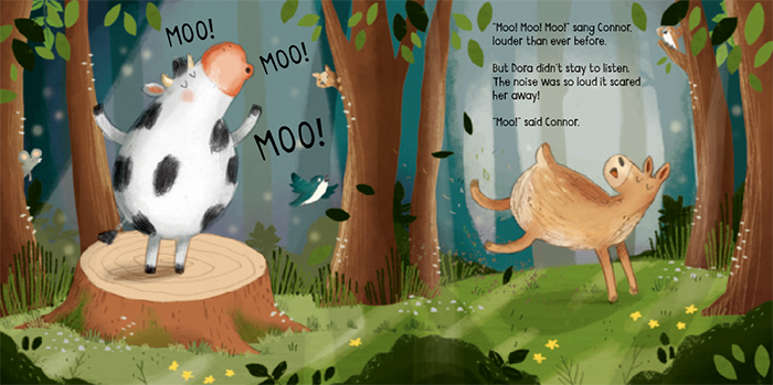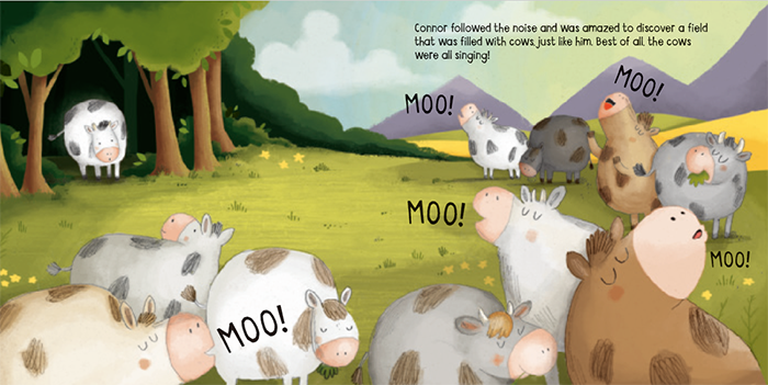 康纳牛喜欢唱歌。他整天都在唱歌。事实上,他唯一不唱歌的时候是在他熟睡的时候!