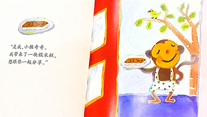 大象带着西瓜来兔子家玩,他们俩把西瓜分成两半吃的时候,猴子拿着糕饼来了,他们三个又要把糕饼均等分享的时候,又有人来敲门了……从韩国引进。