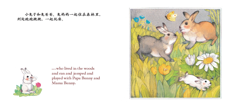 其次,书中的世界也是孩子真实生活世界的缩影。每一个小小动物的成长、每一株小小植物的破土发芽,都伴随着温馨的家庭生活,伴随着小伙伴们的相处,也伴随着成长过程中遇到的危险。比如说《空中的生物》,小鸟的生活中有爸爸妈妈的关爱;有弟弟妹妹的陪伴;但是有一天爸爸还是警告他们说要“小心陷阱”。这一切就像孩子要面对的世界:孩子的成长过程中遇到很多不同的社会角色,有家人、朋友,还有陌生人,而孩子要像小鸟一样,要认识这个社会,要关爱家人、关爱朋友,当然也要警惕潜在的危险。阅读的过程中,家长可以有意识地去引导孩子体会图画中的世界。
