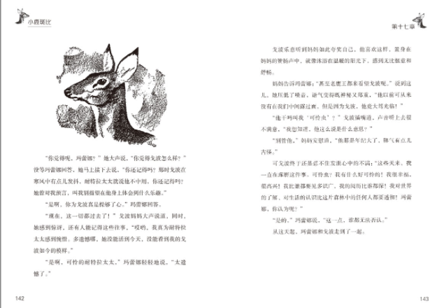 本书讲述了一只离不开妈妈的小鹿斑比成长为森林里尊贵的鹿王的神奇经历。作者借助动物的形象,以拟人化的手法,栩栩如生地反映了人类与大自然、与动物和谐相处以及尊重生命、向往幸福、希冀和平的美好愿望。