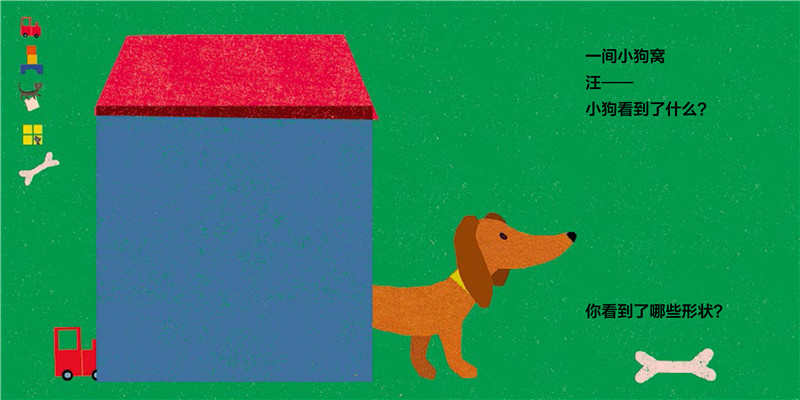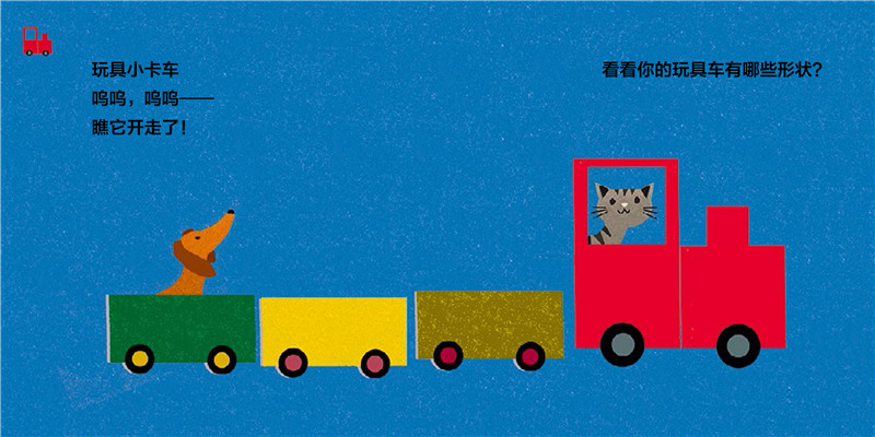 《形状在哪里?》共四册,分别是《和圆形一起玩》《和方形一起玩》《跟三角形去旅行》《跟着线条走》。每册都是孩子熟悉的生活、游戏场景,玩跷跷板、捉迷藏、过马路、放风筝、划船,让孩子在熟悉的情景下,进行抽象思维练习;在熟悉的生活事物中找到隐藏其中的不同形状,原来有这么多的事物都是由形状组成的;在熟悉形状之后,能够将形状作为一种符号进行运用、创作,这是孩子获得早期抽象思维的关键一步;在各种游戏场景中认知数字、练习点数,西瓜吃完了,剩下几颗西瓜籽?认知上下、前后、空间意识,跷跷板,两个小朋友,谁在上,谁在下?认知量概念,大小、多少,热气球和小皮球,哪个大,哪个小?