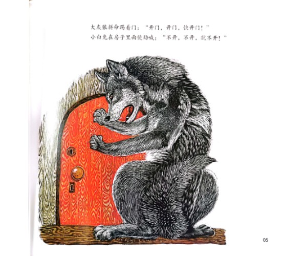 在一个雪天里,大灰狼追赶着一只小白兔,聪明的小白兔跑进了木房子里。大灰狼想尽办法,可小白兔就是不出来。春天到了,木房子变成了花房子,门前的雪娃娃化作了一塘水,小白兔脱下了小白袄,变成了一只灰兔子。大灰狼又来找“小白兔”算账,灰兔子随机应变,把大灰狼骗走了,从而化险为夷。