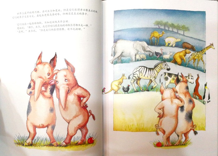 如果你认为,猪一直都是现在这个样子,那么你就错了。实际上,猪刚出现时长着长长的鼻子。但是谁都不知道它们的鼻子有什么用,它们自己也不知道。 在没有人知道猪是猪的时候,当一只猪真的很艰难……小猪亚当和夏娃去外面的世界寻找答案了,他们发现自己是——猪。目录