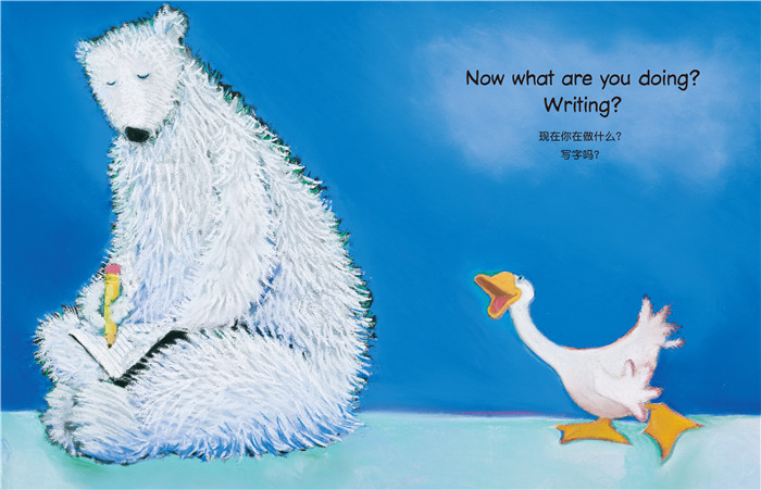 这套书特别的地方是保留着原汁原味的英文,是一套中英双语图画书,孩子可以读中文,也可以念英文,自然而然学习两种语言。英文的句子简短、流畅、优美,有些地方还押韵,读起来轻快流利、有节奏感,孩子朗朗上口之间,已经学习许多字词,熟悉各种句型,念完整篇故事。爸妈或老师也可以引导孩子用英文说故事或演故事,英语能力一定大为精进。这三本书除了故事带给孩子无限惊喜外,张张图画更让孩子爱不释手,没有繁复花俏的背景,有的是可爱的造型、生动的表情、逗趣的动作、丰富的色彩,一再散发出暖融融的友情,让人欢喜啊!与孩子共读时,爸妈尽量让孩子用眼睛看、用嘴巴说、用手触摸、用心体会,给孩子与图画眼神交汇、心灵交流的时间,这才是幼儿阅读图画书*棒的方式。