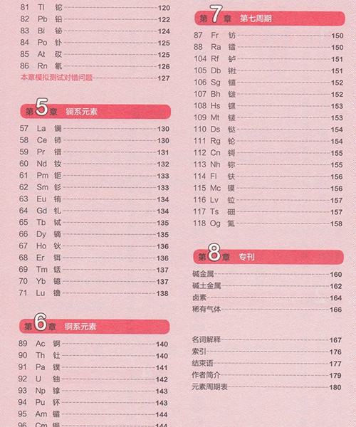 这是一本由日本东京大学的学霸们编写的化学元素学习的工具书。全书通过600余幅漫画就118种化学元素进行漫画图解,“一幅画一句话”对应一个化学知识点讲解,形象生动,方便学生理解和记忆。 此外,图书还设有“重点”知识模块讲解,为同学们梳理了每个元素的要点和考点。更重要的是,本书注重相关知识拓展,增加了前沿技术和新知识的内容详述,可有效帮助学生拓宽知识面。
