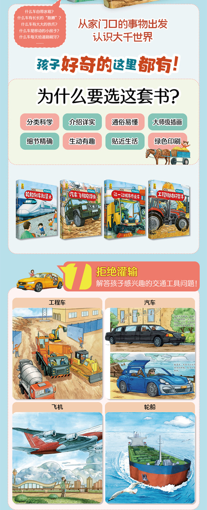 本书为原创科普图书。内容包含“勤劳的城市作业车”和“让一让,救援车来了”两大主题,详细介绍了城市作业车与救援车的不同种类和用途,“勤劳的城市作业车”按照用途,依次介绍了城市中辛勤工作的作业车,让孩子得以区分不同车种的作用;“让一让,救援车来了”按照职能,分别讲述了医疗、消防和抢险救援车的构成和工作,使孩子们了解这些城市卫士们的辛苦和使命。本书内容丰富,书中插图均为全手绘绘制,画面精美生动,富有美感。作为科普启蒙读本,本书运用简单明了的语言和生动的画面表现,兼具科学性和趣味性,以此传播科学知识,养成科学素养。