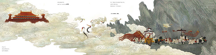 4. 恢弘大气的拉页长图,充满想象的众神会聚的场景,具有东方意境的诗意景象,每一个细节都彰显出无尽想象的人神爱恋的怅惘之情。