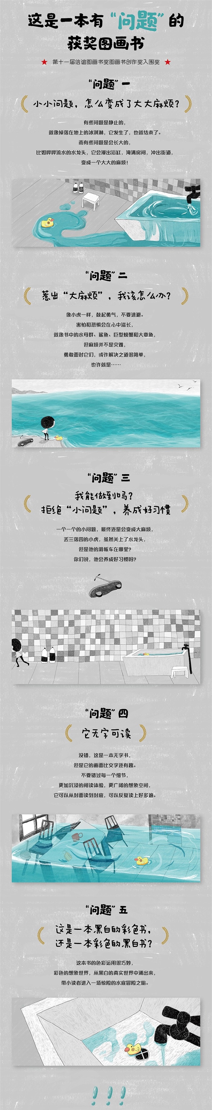 本书是一部童趣满满的原创儿童绘本,从儿童的生活实际和心理特点出发,构架了一个内心历险故事。小男孩突然想起自己忘记关水龙头,可怕的后果在他的世界里开始浮现,水漫出了浴缸,充满了房间,淹没了街道,变成了大海。小男孩跳入水中,躲过了大水里的各种危险的怪兽,战胜了盘踞在浴缸里的章鱼,后关掉了龙头,拯救了世界,而幸好这一切都没有人发现。