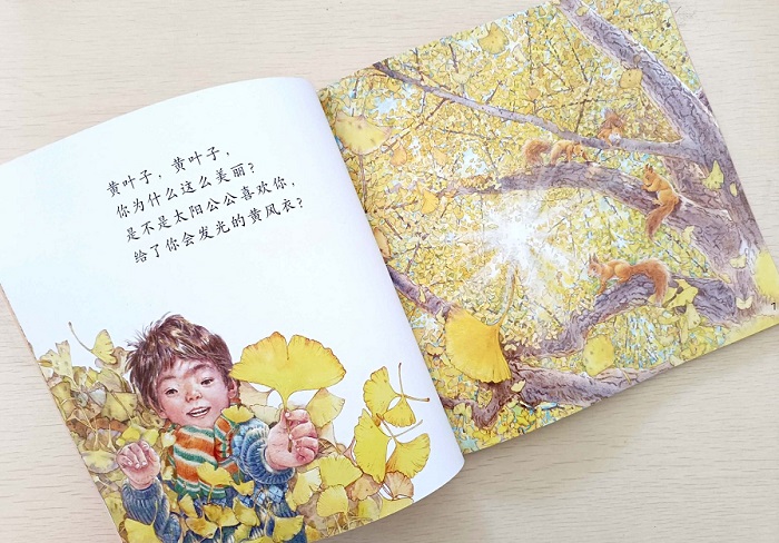 《红叶子,黄叶子》是一首童诗,歌颂的是秋天的美景。秋天,树叶有的变红,有的变黄,这是多么温柔,多么让人沉醉的景色啊!