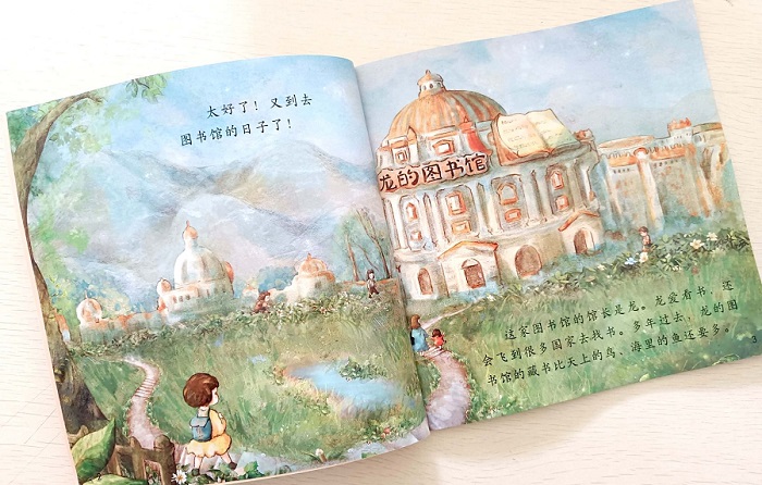 《龙的图书馆》是一个带有奇幻色彩的故事。在西方传说中,“龙”凶猛可怕,但这个故事里的龙虽然有令人害怕的外形,实际上却热爱读书、心地善良、和蔼可亲。另外,传说中的龙大多有收藏的爱好,而故事里的龙喜欢收藏的就是书,他还开了一家龙的图书馆呢。
