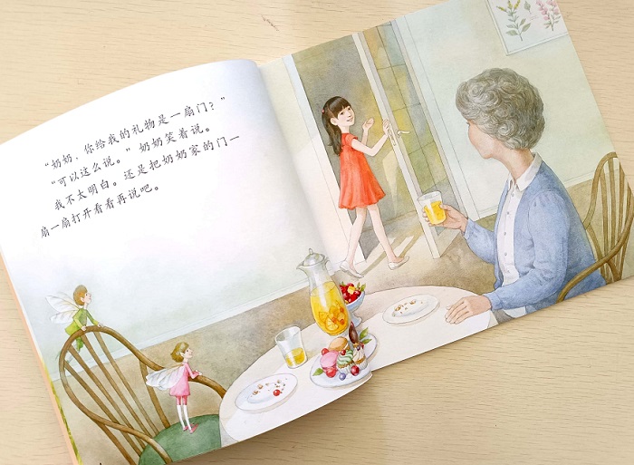 木木生日这天,奶奶准备的礼物是“里面什么也没有的门”,木木必须自己去找。在“寻宝”的过程中,木马找到了不少回忆:她以前的衣服、玩具和书,都被爱她的爷爷奶奶细心地收起来了。后来木木终于意识到:一本书也是一扇小小的门。这个故事的主旨。书就像一扇门,带我们进入崭新的、丰富多彩的世界。