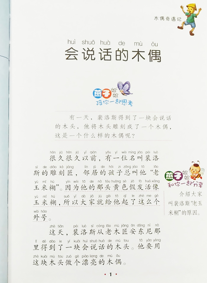 《新课标名著小书坊(注音版):木偶奇遇记》是科洛弟的代表作,发表于1880年。它叙述老人泽皮德把一块能哭会笑的木头雕成木偶,并把取得生命的小木偶当成儿子。老人卖掉上衣,供儿子上学。可是小木偶一心贪玩,为了看戏不惜卖掉课本。回家路上受狐狸和猫的欺骗,差点儿被它们吊死,幸亏巧遇仙女而得救。后又被愚人国法官投进监狱;出狱后,又被捕兽器夹住,被迫当了看家狗。他后悔极了,心想:“如果我像其他好孩子一样喜欢读书、做工,现在我就会和爸爸呆在一起过着幸福的生活,就不会在这里给人家当看门狗了。”