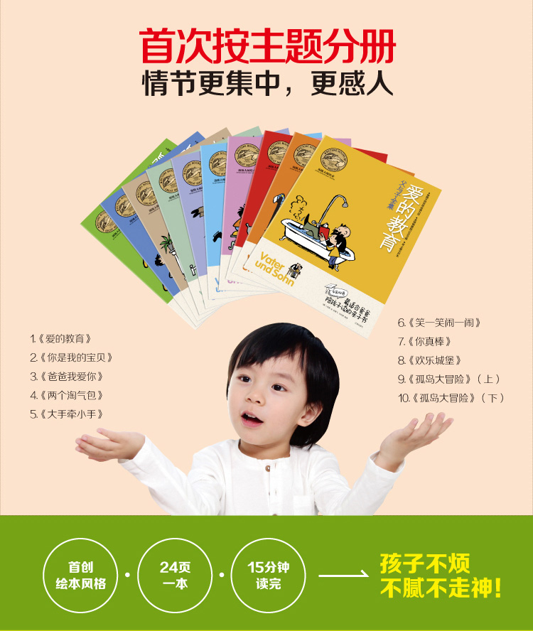 连环漫画《父与子》是德国幽默大师埃·奥·卜劳恩的不朽杰作。作品中一个个生动幽默的小故事都是来自于漫画家在生活中的真实感受,父与子实际上就是卡劳恩与儿子克里斯蒂安的真实写照。一幅幅小巧精湛的画面闪烁着智慧之光,无言地流泻出纯真的赤子之情与融融天伦之乐,永远地震撼着人们的心灵。