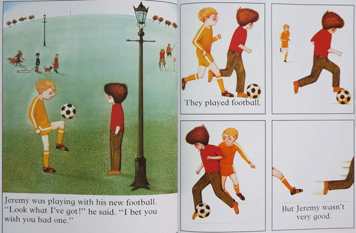 This is a new edition of the master illustrator's story of a show-off getting his comeuppance. Jeremy, it seems, has everything: a new bicycle, a pirate outfit, an enormous bag of lollipops. But he won't share anything with Sam. Could it be, though, that Sam has something far more valuable? This stunning book is filled with visual jokes and a message to inspire.