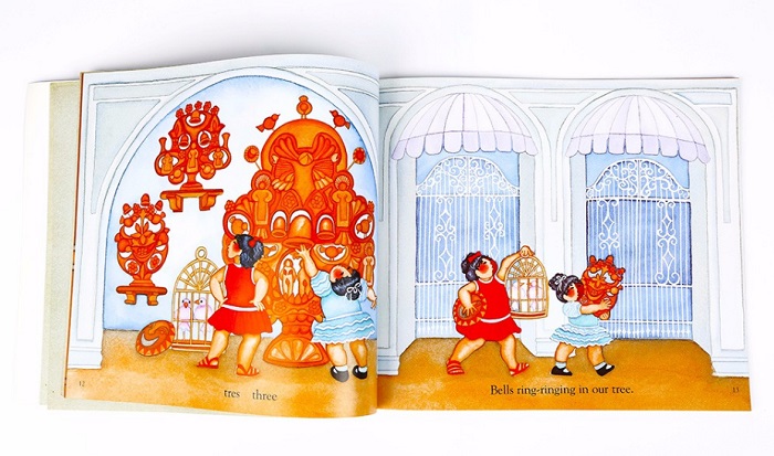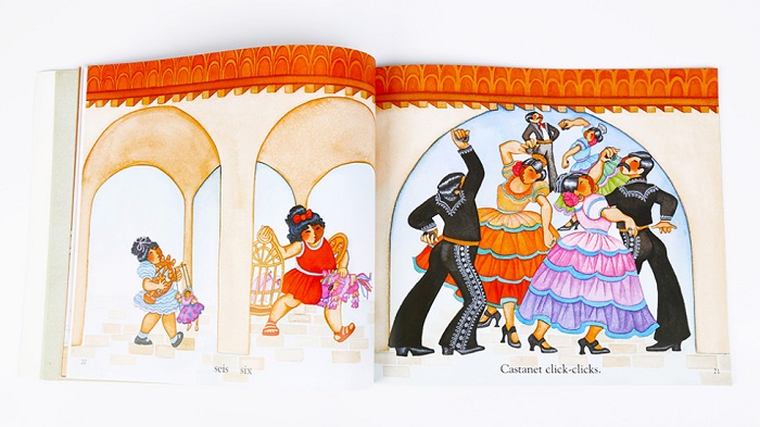 生活在墨西哥的姐妹俩,到集市上给妈妈买生日礼物。一路上,她们经过漂亮的喷水池,看到把菠萝举到肩膀上跳舞的女孩子们、排列整齐的士兵木偶、穿着墨西哥传统服装举行音乐会的乐队......她们给妈妈买一个太阳、一对鸽子、摇铃、小纸马、扯线木偶...... 一、二、三、四、五、六、七、八、九、十。她们一共给妈妈买了十份礼物!这本书既能让孩子学习英语和西班牙语,还能让孩子认识西班牙气息浓厚的墨西哥文化!