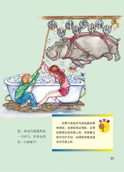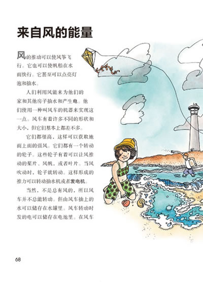 在这本书里你会学到是什么使得机器工作的。滑轮依赖人的能量或运动来工作。计算机需要来自电的能量来工作。能量还可以从风或阳光,从烧木头或汽油等燃料,或者从小小的原子的运动中获取。