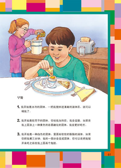 这本书里有很多帮助你学习的栏目。在标志着“全知道”的框子里,你可以找到很多有趣的事实。你可以向你朋友炫耀你学到的这些东西。