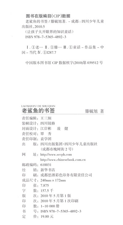 你想揭开海洋之谜吗?快打开这本《老鲨鱼的书签》吧,它用奇特的幻想,为你编织一个个迷人的故事,向你介绍了海洋鱼类、兽类、贝类的种种奇事、奇闻、奇趣,使你在领略它们风采的同时,知道它们的特点、习性以及与人类密不可分的关系。 本书以童话的形式,将科学知识巧妙地融于其中,为小读者打开了一扇扇探索海洋世界的百叶窗。
