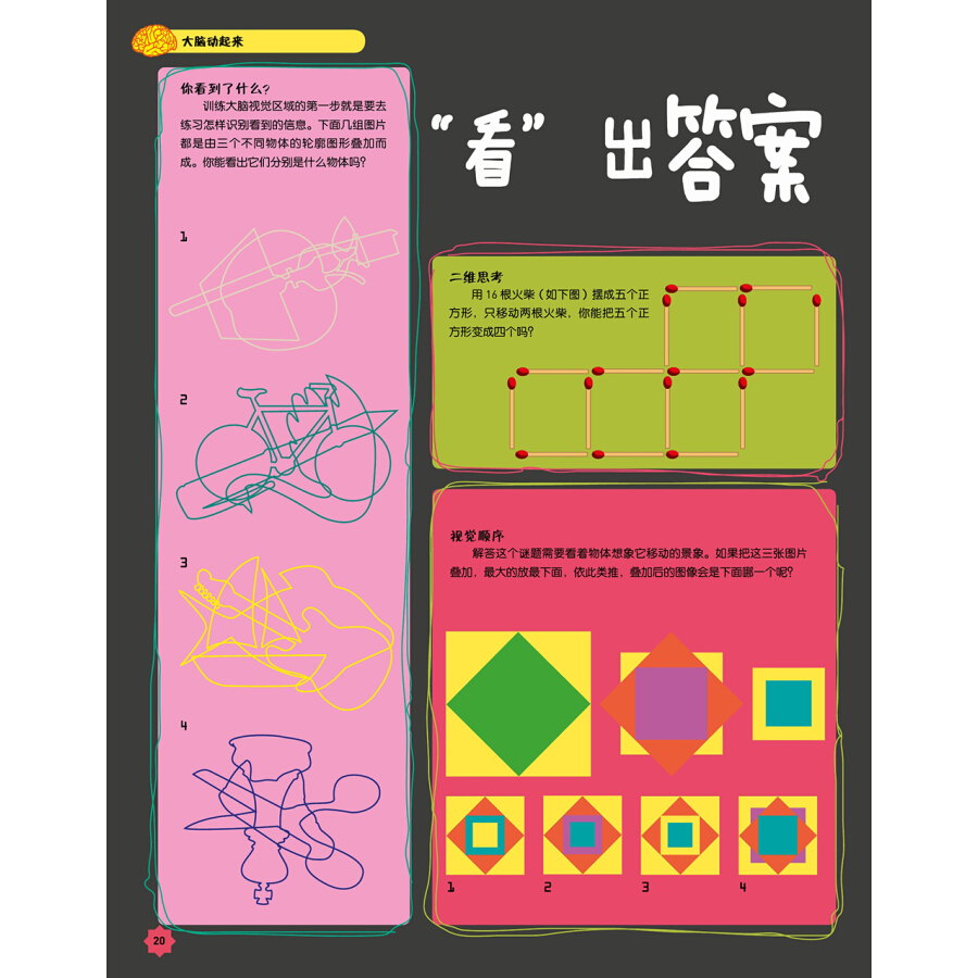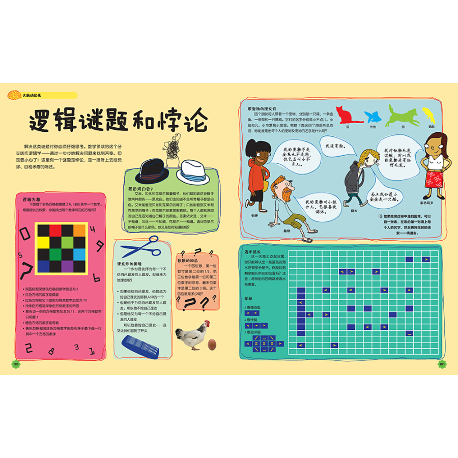 《DK儿童数学思维手册》是英国DK公司出版的一本训练青少年数学思维、逻辑思维的精装全彩图书,书中仔细研究了历史上一些强的数学大脑——从古希腊数学家阿基米德到第二次世界大战期间破译密码的专家阿兰?图灵;还包含了一系列的数字游戏、逻辑问答、图形谜题和其他各种能激发大脑细胞的好玩活动,让我们一起来看看,你的数学思维能力到底有多强!