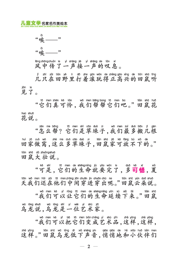 丛书选取了30位知名儿童文学作家原创的优秀儿童文学作品,有长篇的,也有短篇的,以寓言、童话故事为主,每位作家一本书,共30本。故事内容符合儿童心理特点。文中好的词语都变了颜色加以突出,加深读者对一些精彩词语的记忆,对于经常出现的多音字或变声字加点,巩固读者对拼音的掌握,并且随文附加一些引人思考的小问题,有利于启迪儿童智慧,培养儿童积极健康的思想品质。优秀的儿童故事配上精美的彩色插图,文图相映成趣,为孩子们以后的文学素养进行了一个良好的启蒙。
