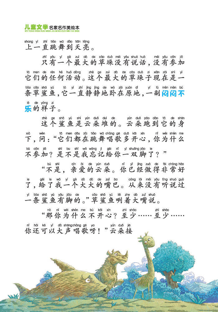 幻想是儿童的天性,是他们与生俱来的能力。这种充满灵性的能力使儿童眼中的世界神秘多姿、奇异美好。这种幻想并不是无用的,它可以使孩子们的童年快乐无穷,还能开发孩子们的想象力和创造力,促进思维能力的发展。在儿童文学领域,就充满着这种奇妙的幻想。小朋友们可以和小石头对话,可以和星星交朋友,可以在深夜骑上大马去世界各地旅行……它以童趣、率真的语言为孩子们构筑了一个瑰丽奇幻的童话王国,畅游其间,欢乐无限。