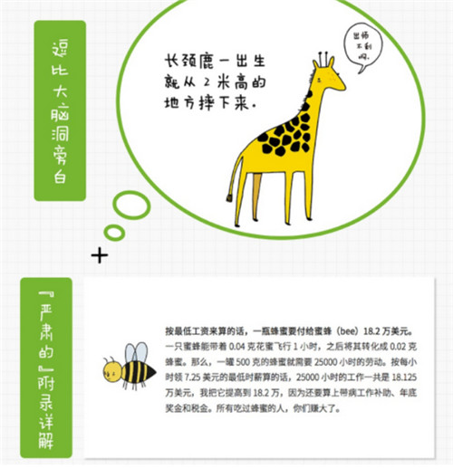 这本书会偷偷告诉你很多关于动物们的让人心酸又忍不住想笑的冷知识,都是那些蠢萌动物朋友们偷偷藏起来的小秘密:长颈鹿每天只睡半小时,猪永远看不到天,短吻鳄的大脑比奥利奥饼干还要轻,大象跳不起来……这些妙趣横生的小知识配上呆萌可爱的小插图,让人一读就停不下来!