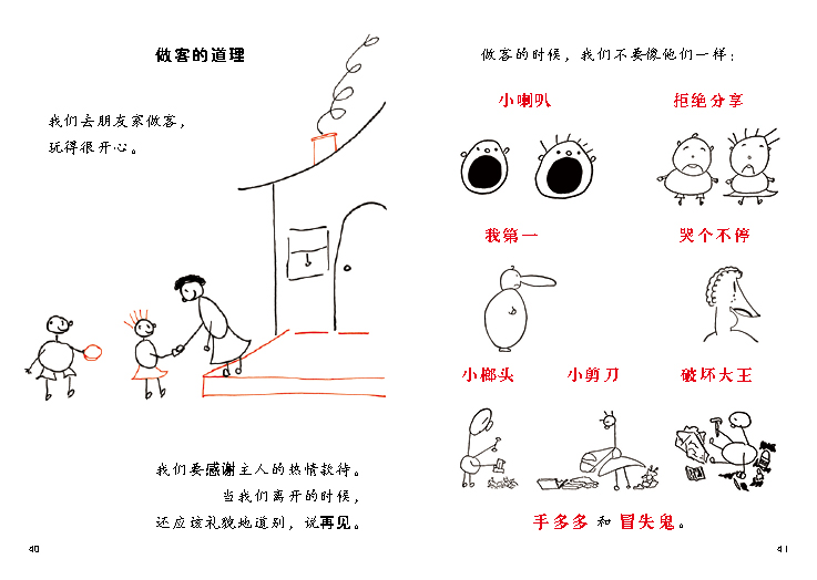 曼罗·里夫的文字亲切自然,图画活泼幽默,令人爱不释手。他把最基本的礼貌礼仪常识,变得灵动有趣味,容易理解,会让小读者从心底笑出来。这是一本令人快乐的书。