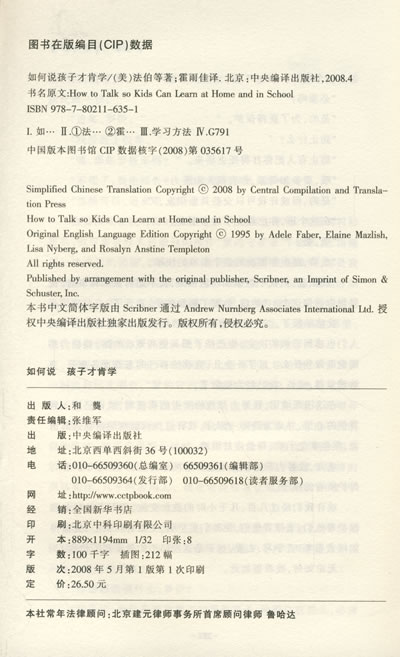 《如何说 孩子才肯学》荣获美国《儿童》杂志年度最佳图书,亚马逊儿童教育超级畅销书,揭示让孩子乐于学习的秘密《如何说孩子才会听 怎么听孩子才肯说》已经成为无数中国家长的育儿圣经,法伯和玛兹丽施在书里发现的与孩子沟通的技巧和方法被证明是十分实用的,通过全球20多万个亲子团队的使用,取得了惊人的效果,而这些方法在中国也得到了高度的认可。在《如何说孩子才肯学》中她们将继续运用这种方法,帮助家长和老师解决当今一大棘手问题——在这个充斥着各种娱乐和享受而又自由反叛的年代,如何激励孩子在学习上拥有最大积极性。《华盛顿邮报》评价说:“如果你是一个老师或父母,没读过这本书,你将一筹莫展。”