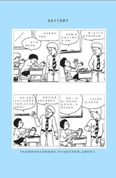 所以,你能想象,当我读到法伯(AdeleFaber)和玛兹丽施(ElaineMazlish)在《如何说孩子才肯学》中对两种表扬艺术的讨论时是多么欣喜。她们建议父母和老师:集中注意力,将你的发现和感受用描述的方式告诉孩子,可以帮助孩子将努力放在自己的任务上,而不是放在他人的赞许上;在倾听你描述的过程中,孩子会作自我评价。这样,孩子会逐渐成为独立的、具有创造性思维和行为的人。