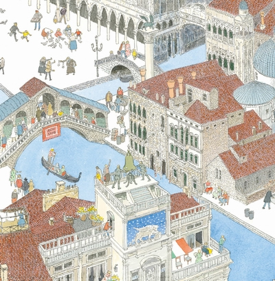 幽静的村落,连绵的绿地,古老的城镇,熙攘的集市……既有辽远开阔、沁人心脾的自然景致,也有可感可触、如身临其境的街头风貌。1977年,在中欧几个国家旅行之后,安野光雅完成了第一本旅行绘本《旅之绘本》,后来又相继创作了另外几本,足迹遍至意大利、英国、美国等等。