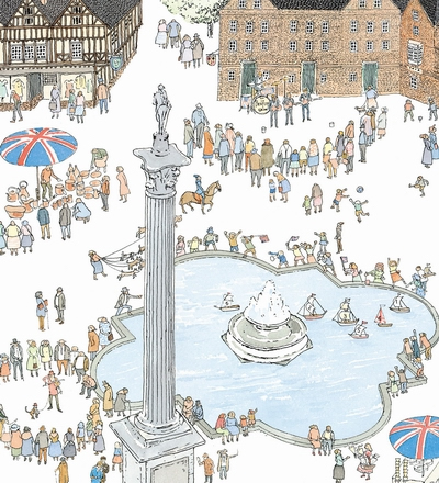 封面上的米字旗告诉我们,这一站是英国。安野光雅在后记中说英国是世界上拥有最美丽村庄的国家。满眼翠绿的草地,蜿蜒的乡村小路,村庄农舍人们的平静生活,安野光雅画中那些美丽静谧的村庄让人向往。当然,这一本里仍有许多体现英国历史人文积淀的有趣细节。比如,不仅有文学巨擘莎士比亚的著作,还有他出生时的房子,他的妻子安妮?哈萨威的家。除此以外,“彼得兔”的故事也会出现在书中,你还能看到凯特?格林威站在院门口,不远处还有她的作品《捉迷藏》;另外,伦敦塔桥、国会大厦、海德公园的“演讲者之角”等许多建筑、名胜也会一一出现。不过,这些都只是英国篇的一小部分,你还能想到哪些象征英国文化的细节呢?快去书中找找看。